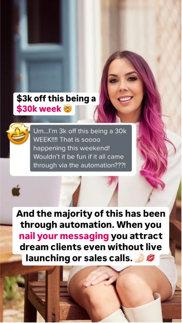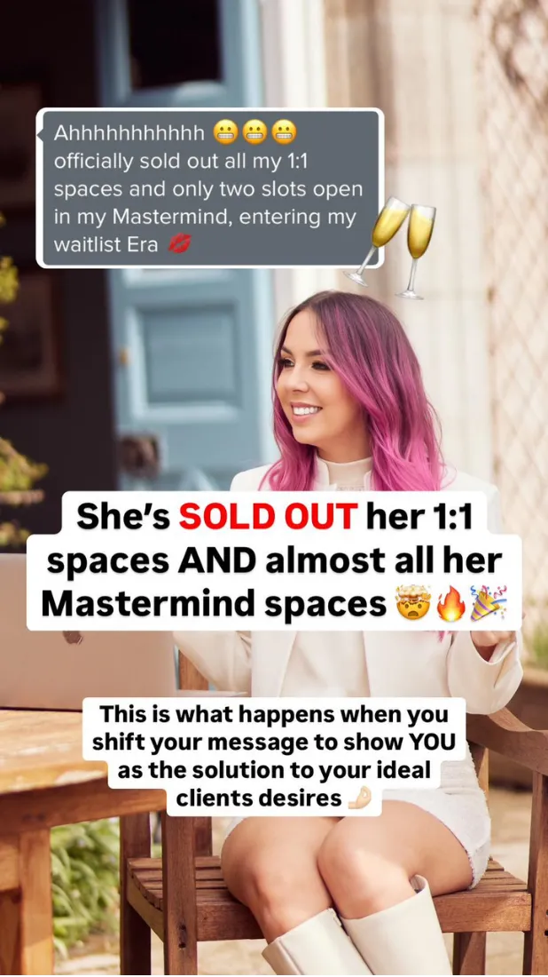 ✅ Make your message do the selling for you—so you no longer need sales calls, exhausting live launches, or endless hours “nurturing” in the DM’s